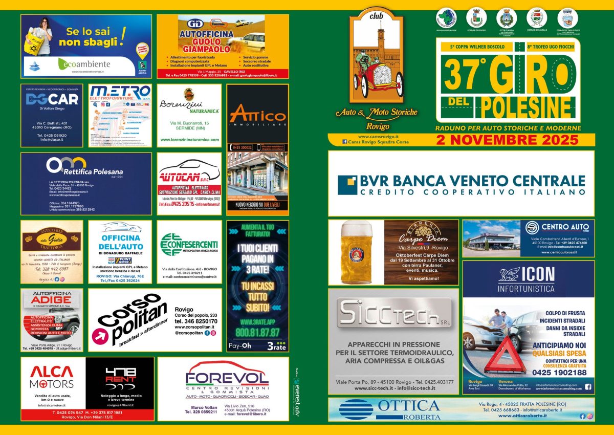 Ore 7.30 – 8.45 Verifiche e distribuzione roadbook presso Corsopolitan, Corso del Popolo 233 – Rovigo