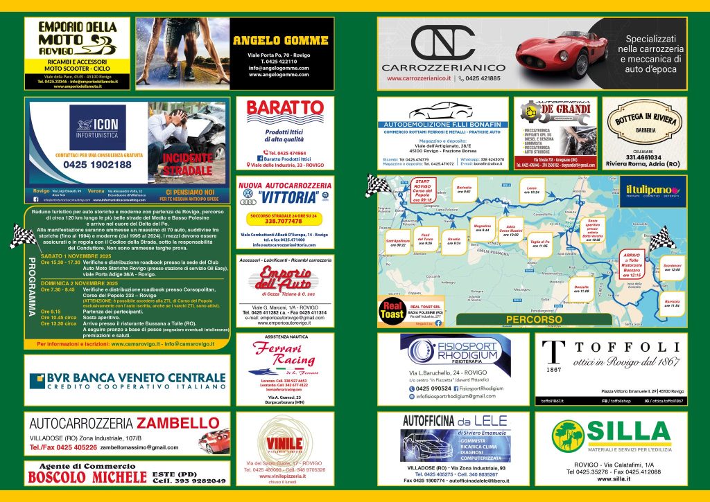 Raduno turistico per auto storiche e moderne con partenza da Rovigo, percorso di circa 120 km lungo le più belle strade del Medio e Basso Polesine