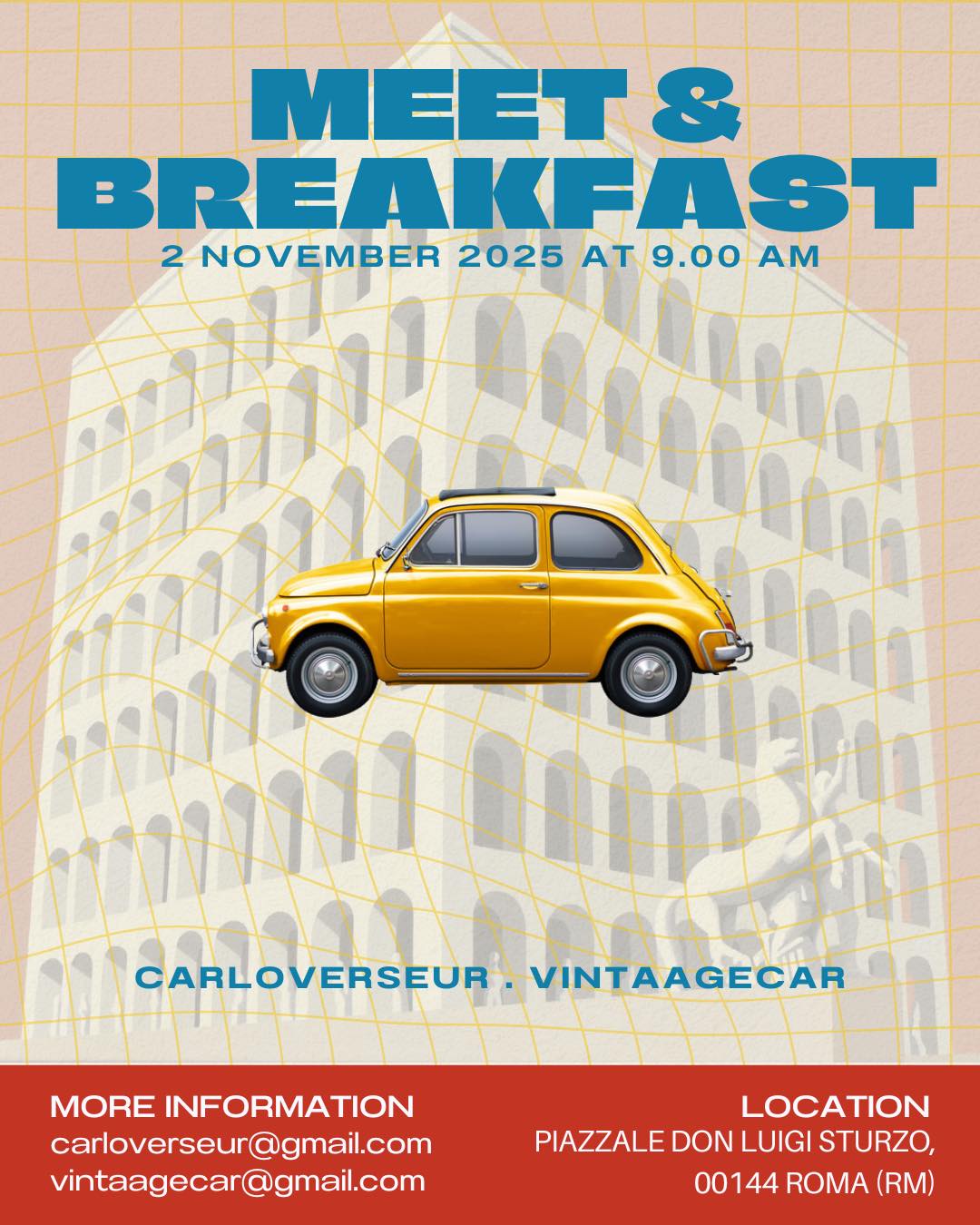 All’Eur nasce un nuovo appuntamento mensile per chi ama auto, vespe e colazioni con vista motori.