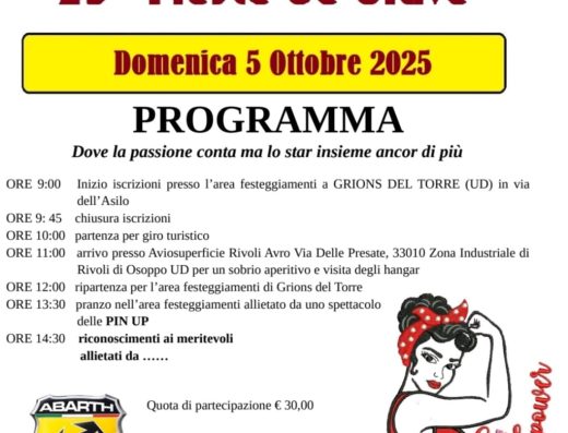 RUOTE NELLA STORIA 2025 – 5ª edizione Torna l’appuntamento più atteso dagli appassionati di auto storiche! Domenica 5 ottobre 2025 ... continua >