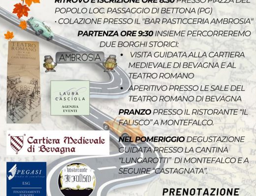 Raduno Auto d’Epoca RITROVO E ISCRIZIONE ORE 8:30 PRESSO PIAZZA DEL POPOLO LOC. PASSAGGIO DI BETTONA (PG) • COLAZIONE PRESSO ... continua >