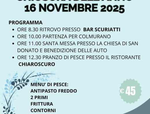 PROGRAMMA • ORE 8.30 RITROVO PRESSO BAR SCURIATTI • ORE 10.00 PARTENZA PER COLMURANO • ORE 11.00 SANTA MESSA PRESSO ... continua >