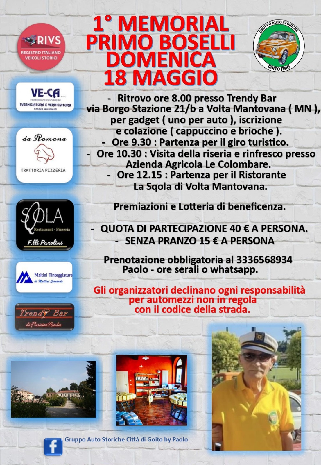 Gli organizzatori declinano ogni responsabilità per automezzi non in regola con il codice della strada