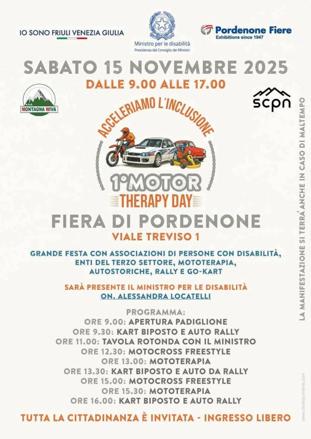GRANDE FESTA CON ASSOCIAZIONI DI PERSONE CON DISABILITÀ, ENTI DEL TERZO SETTORE, MOTOTERAPIA, AUTOSTORICHE, RALLY E GO-KART SARÀ PRESENTE IL MINISTRO PER LE DISABILITÀ ON. ALESSANDRA LOCATELLI PROGRAMMA: