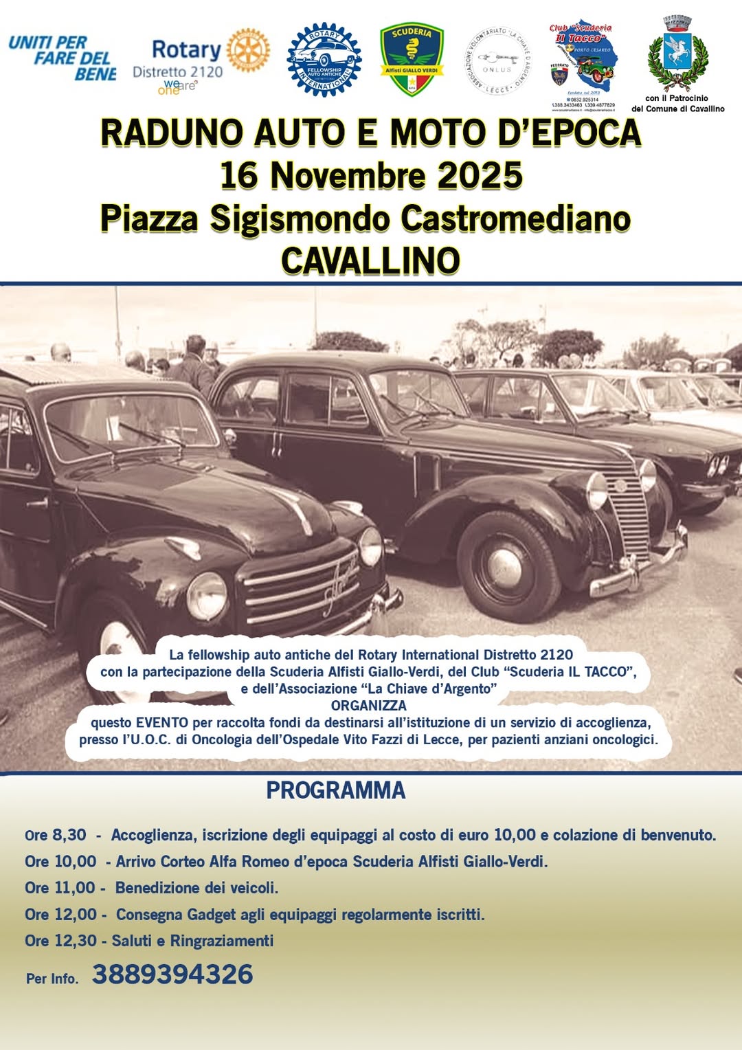 Nella manifestazione saranno presenti la scuderia Giallo Verdi con il carosello delle Alfa Romeo d’Epoca delle Forze dell’ordine.