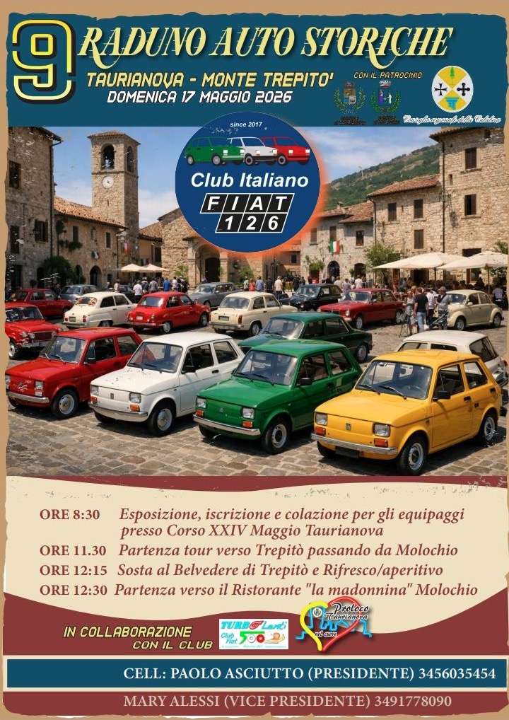 ORE 8:30 Esposizione, iscrizione e colazione per gli equipaggi presso Corso XXIV Maggio Taurianova