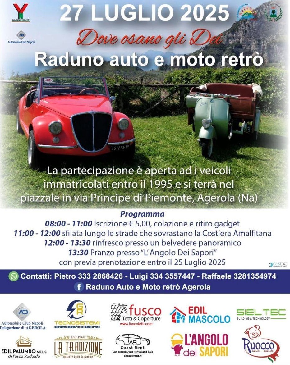 La partecipazione è aperta ad i veicoli immatricolati entro il 1995 e si terrà nel piazzale in via Principe di Piemonte, Agerola (Na)