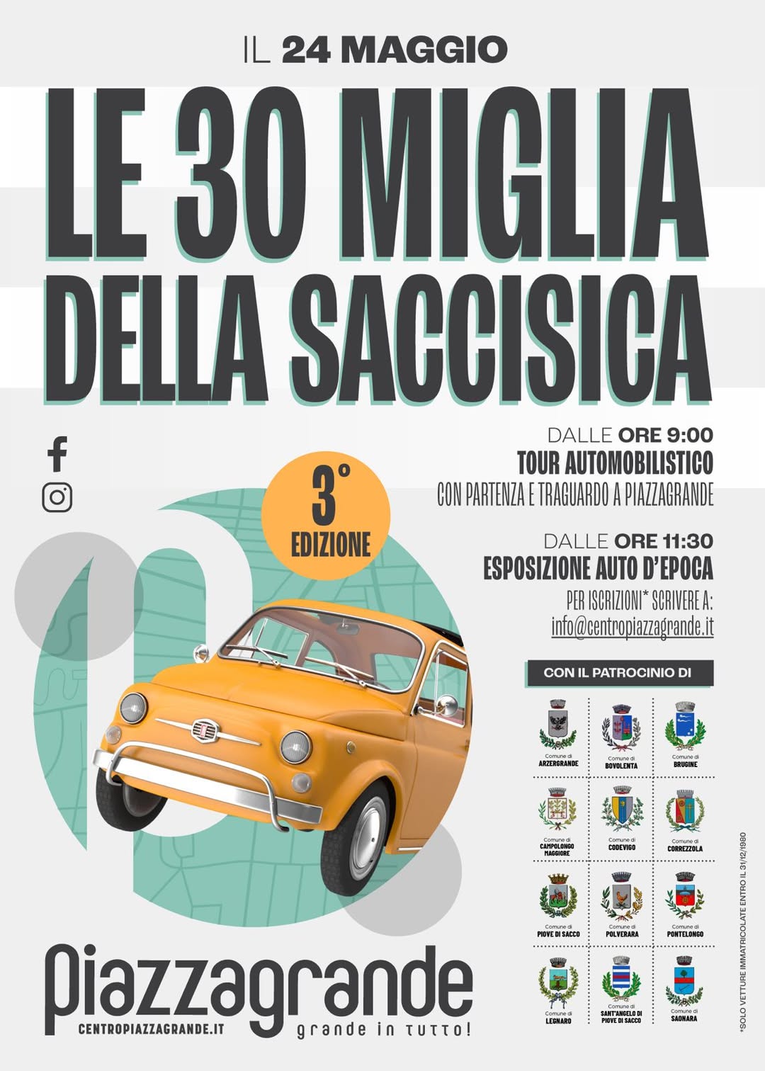 DALLE ORE 9:00 TOUR AUTOMOBILISTICO CON PARTENZA E TRAGUARDO A PIAZZAGRANDE