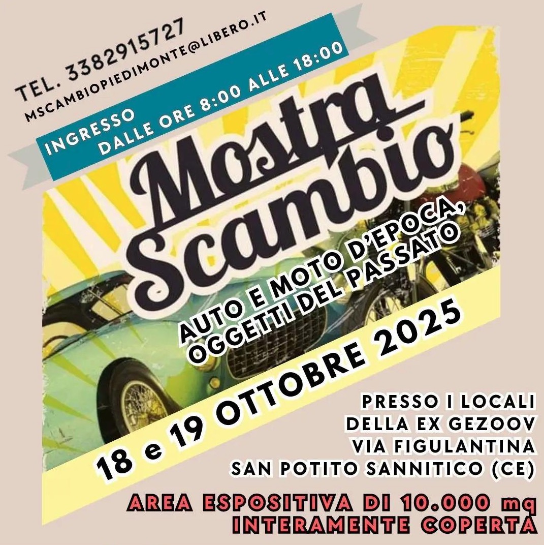 Mostra Scambio auto, moto d’epoca, oggetti del passato 18 e 19 ottobre 2025 presso i locali della Ex Gezoov – Via Figulantina, San Potito Sannitico (CE)