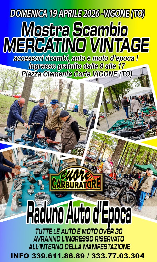 MERCATINO Vintage – Mostra Scambio Veicoli e Ricambi (Ingresso ed esposizione GRATUITA (solo su prenotazione! 3996118689 oppure 3337703304 )