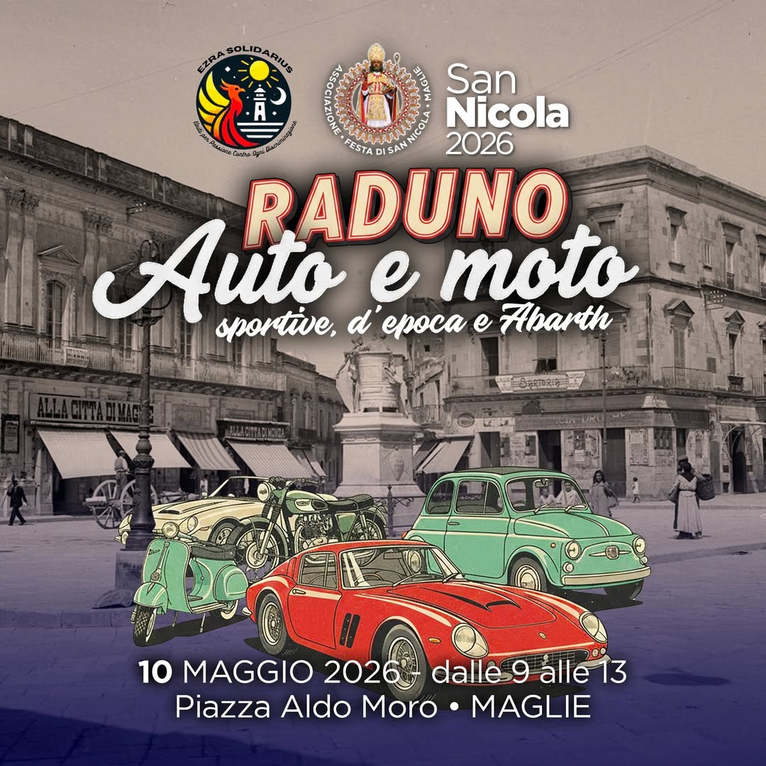 Domenica 10 Maggio, Piazza Aldo Moro si trasformerà nel cuore pulsante del motorismo pugliese! Per tutta la mattinata un evento senza precedenti nella storia dei festeggiamenti del nostro Santo Patrono San Nicola: Un raduno incredibile che unisce il fascino delle Auto e Moto d’Epoca, il ruggito delle Sportive e la grinta inconfondibile del mondo Abarth!