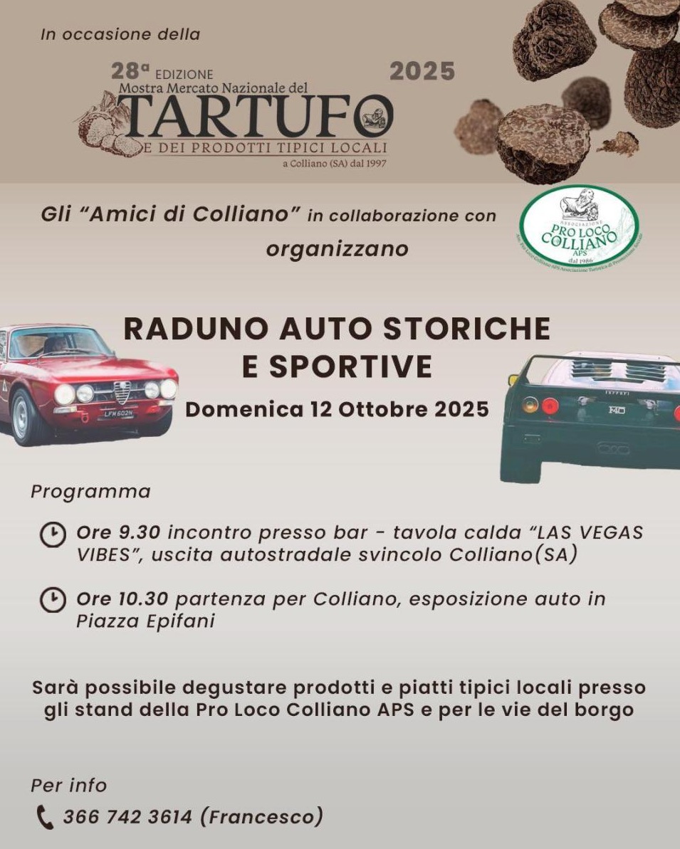 In occasione della 28ª EDIZIONE Mostra Mercato Nazionale del TARTUFO DE DEI PRODOTTI TIPICI LOCALI, gli “Amici di Colliano” in collaborazione con PRO LOCO COLLIANO organizzano
