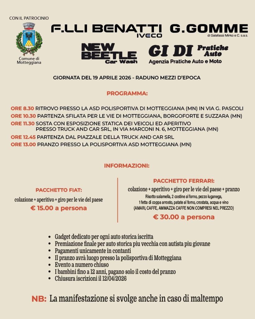 • Il pranzo avrà luogo presso la polisportiva di Motteggiana