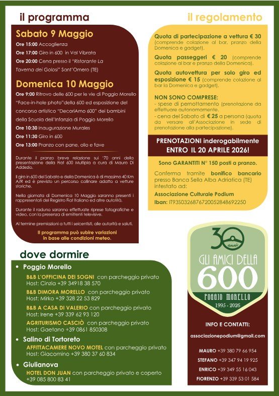 PRENOTAZIONI inderogabilmente ENTRO IL 20 APRILE 2026!