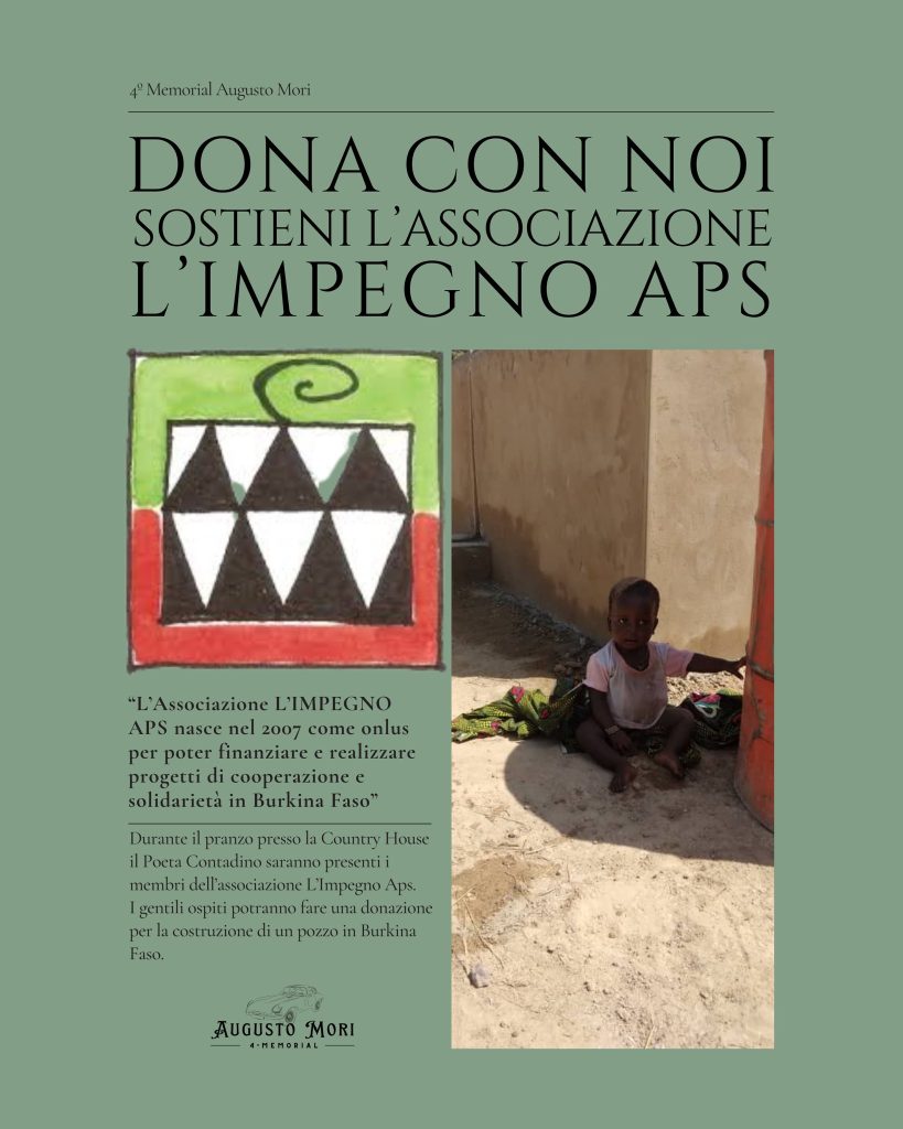 Con orgoglio, si comunica che durante quest’ultima tappa del Memorial Augusto Mori, sarà fatta un’importante raccolta fondi in collaborazione con l’Associazione l’Impegno Aps per la costruzione di un pozzo in Burkina Faso.