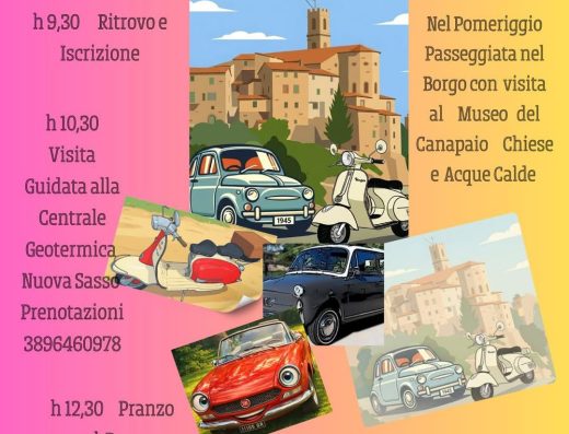 h 9,30 Ritrovo e Iscrizione h 10,30 Visita guidata alla Centrale Geotermica Nuova Sasso h 12,30 Pranzo nel Borgo Medievale ... continua >